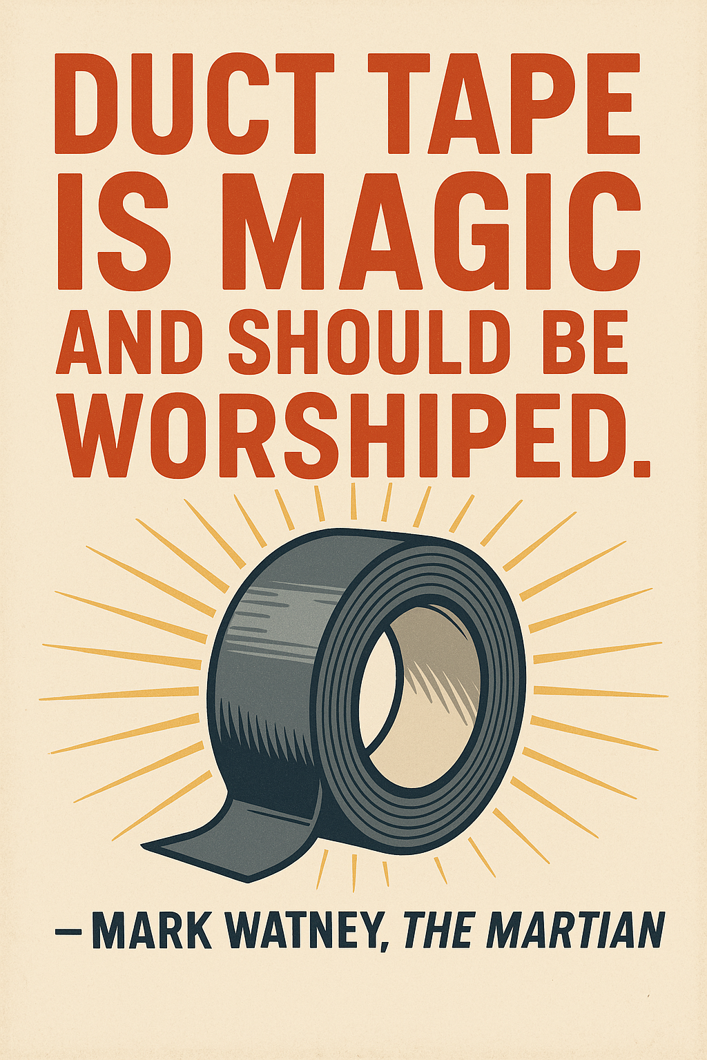 This book is funny. Like, cackle-in-public, scare-your-pet, text-your-friend-a-quote funny. It’s all engineering disasters, chemical near-misses, and one man’s unrelenting belief that duct tape can solve anything. (“Yes, of course duct tape works in a near-vacuum. Duct tape works anywhere. Duct tape is magic and should be worshiped.”). Mark’s voice is everything. His deadpan humor and refusal to quit make this book not just readable but irresistible. His constant commentary — equal parts gallows humor, scientific breakdowns, and exasperated swearing — makes you laugh out loud at moments when you absolutely shouldn’t.